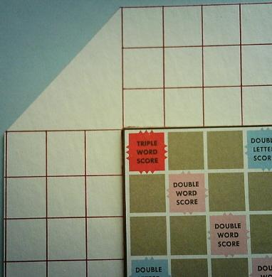 In fact, if you're content to not rotate the board during the game, you can simply use a regular board and let the tiles run onto the table top. I'm proud to say the first Scrabble II games ever played with the extended board were on my "1949" set.